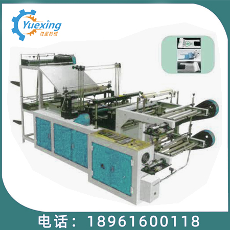 該設備是根據外貿出口薄膜包裝袋企業的要求,自行研制生產的集光、電。氣、儀于一體的主自動電腦連卷背心袋制袋機。主要適用于PE、PP、PVC等多種熱熔性薄膜的制袋。具有光電控制自動放料,彩色印刷袋光電跟蹤色標,雙工位放料、雙工位封口、步進電機控制速度及袋長、上。分別計數,收卷整齊,是生產雙道連卷背、袋及連卷平口袋理想設備。