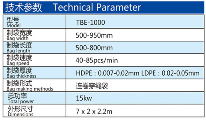 機器特性 此設備為生產連卷穿繩袋的專用設備,制袋速度快,調節簡單。此設備采用全鋼板一體而成,用電220v照明電即可。.